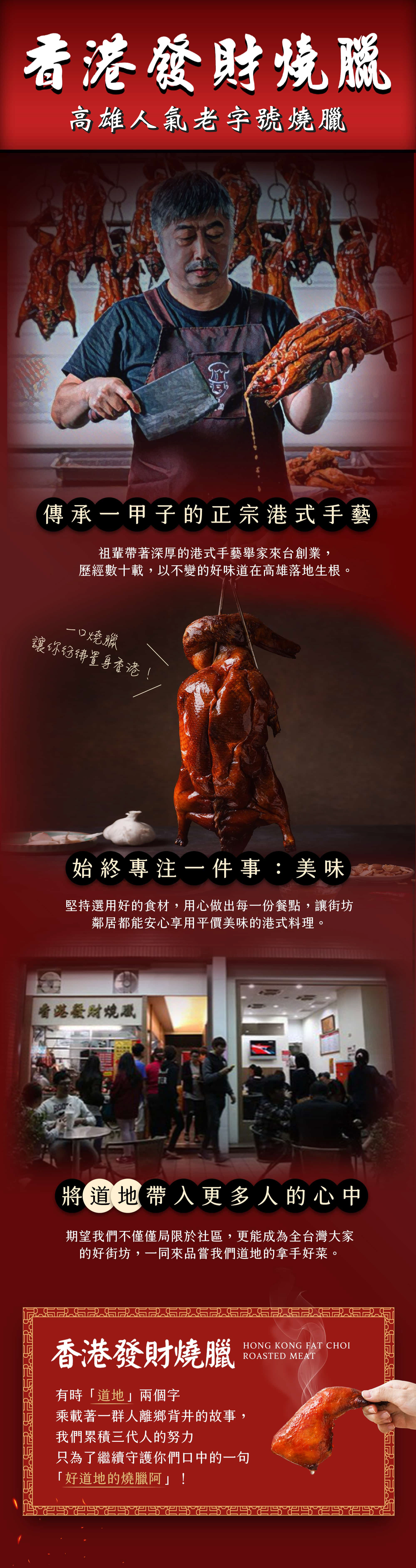 時代在變,我們的初心始終如一。不論是門市現場還是線上訂購,我們一如往常地堅持品質、用心對待每一份出品,我們希望透過更便利的服務,讓您在家也能輕鬆吃到最道地的港味,感受那份傳承三代的溫度。